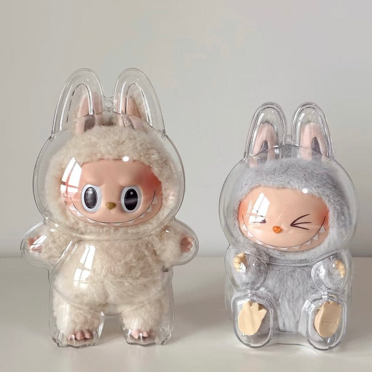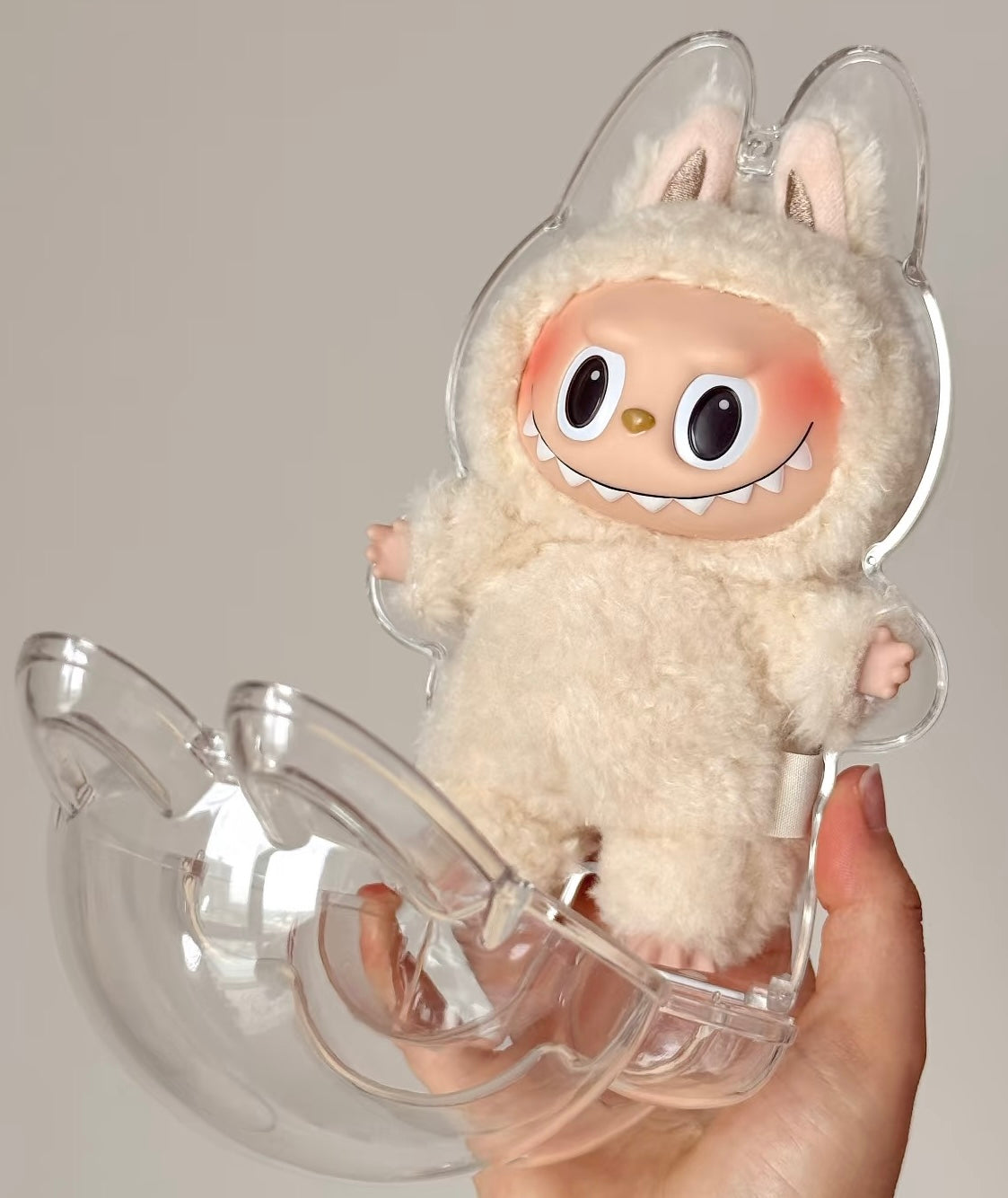 Keep your Labubu dolls safe, clean, and always on show with this adorable clear protective case โ designed just for your keychain-sized Labubu plush friends!